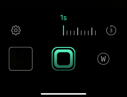 The exposure time slider is pretty straight forward. You swipe sideways to select the length of time you want your exposure to last. The self timer button delays the exposure start for three seconds, which gives you time to brace for the shot. The camera selector simply switches to the camera you wish to use and toggles between each one. The shutter button initiates the exposure and the line around the outside of it travels around it to indicate the time as the exposure builds.